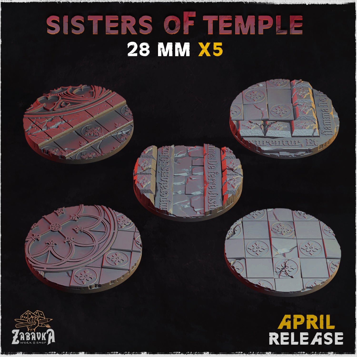 Unleash the full potential of your miniatures with the Sisters of Temple Themed Bases. Upgrade your tabletop gaming experience and immerse yourself in a setting where divine grace and ancient stone intertwine, and where the worn floor still bears the written whispers of forgotten prayers. Visit our store now and bring your army to life upon the crumbling threshold of a sanctified location.